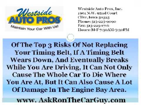 Of the top 3 risks of not replacing your timing belt, if it wears down, and eventually breaks while you are driving, it can not only cause the whole car to die where you are at, but it can also cause a lot of damage in the engine bay area. This is because it is traveling at such a high rate of speed, at such a high rate of stress and pressure, that when it finally does break, there is a lot of force and momentum that causes the rubber and metal of the belt to slam against various engine parts.